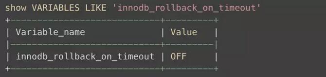 需要注意的是,通常還有另外一種情況也可能導(dǎo)致部分語(yǔ)句回滾,需要格外留意。在 innodb 里有個(gè)參數(shù)叫:innodb_rollback_on_timeout