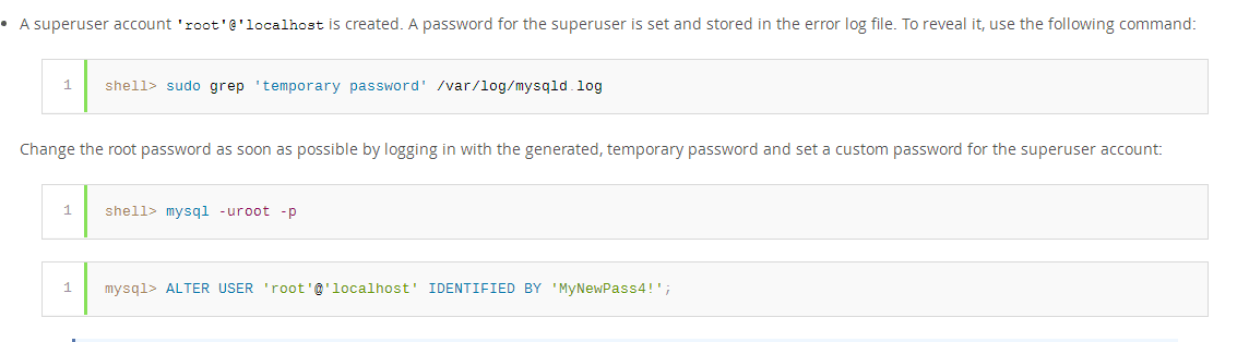 這是官方截圖,mysql5.7安裝后,會(huì)有一個(gè)默認(rèn)密碼,保存在mysql.log里面,找的他,并更改