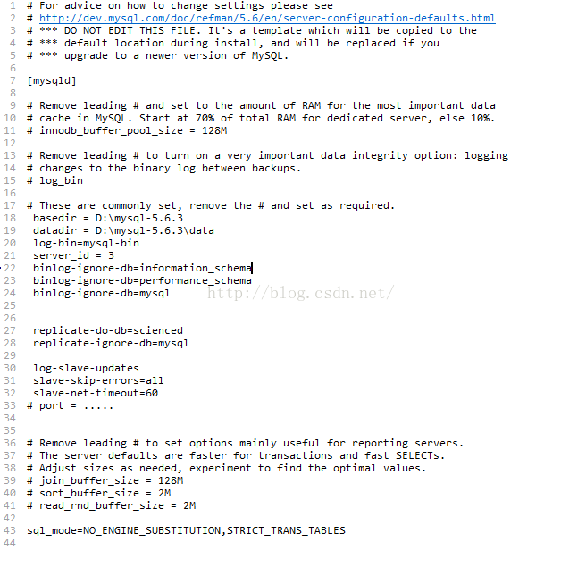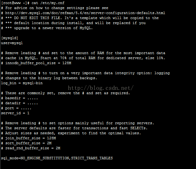 (1).Linux環(huán)境下MySQL的配置文件為/etc/my.cnf,完整配置如下