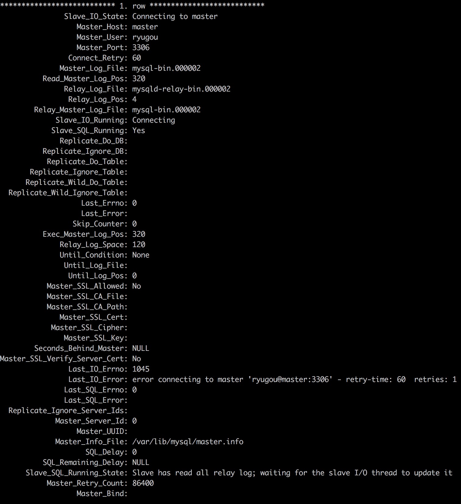 GRANT REPLICATION SLAVE ON *.* to 'ryugou'@'%' identified by 'ryugou';