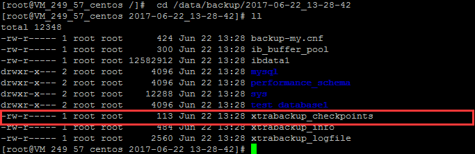 而如何確定完整的備份之后備份到哪里,就依賴于完整備份之后的xtrabackup_checkpoints這個(gè)文件的。