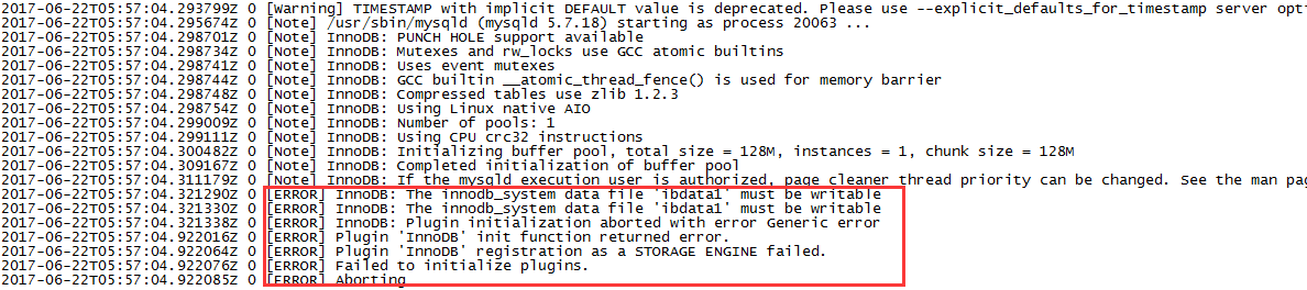看一下錯(cuò)誤日志(啟動(dòng)錯(cuò)誤信息),mysql5.7yum安裝默認(rèn)的errorlog位于/var/log/mysqld.log中,且默認(rèn)不會(huì)滾動(dòng),意味著所有的錯(cuò)誤信息都記錄在這個(gè)文件中。
