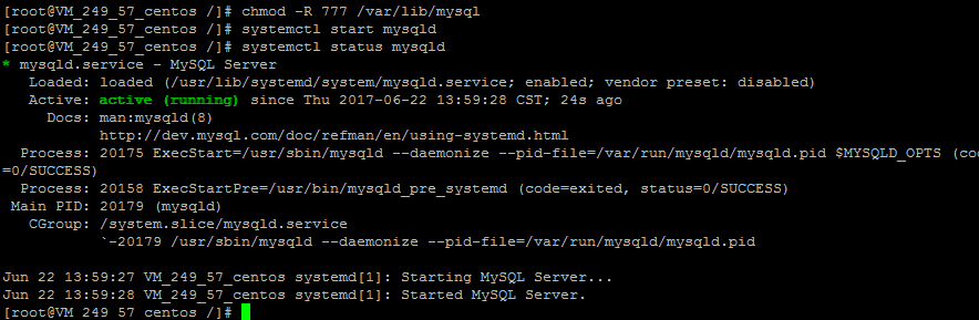這里直接授權(quán)數(shù)據(jù)文件路徑777,chmod -R 777 /var/lib/mysql