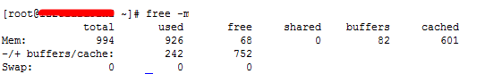 先使用 free -m 查看下系統(tǒng)內(nèi)存大小,查看是 1G 內(nèi)存