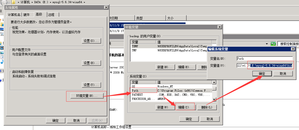 三、設(shè)置環(huán)境變量PATH。將D:\mysql-5.6.20-winx64\bin加入path中。