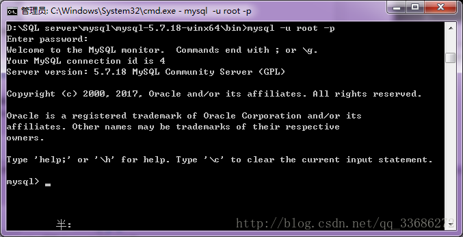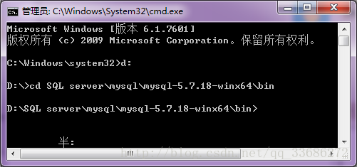 cd到文件路徑下,如D:\SQL server\MySQL\mysql-5.7.18-winx64\bin