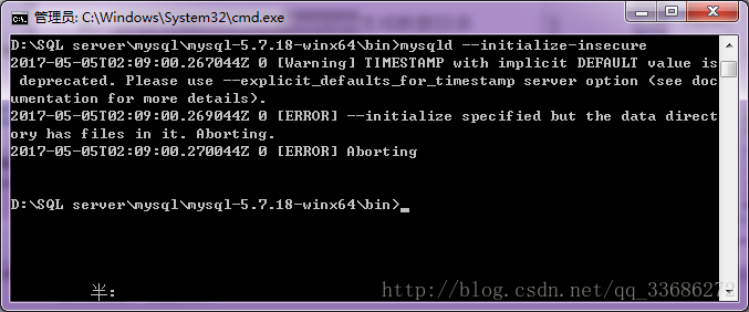 輸入mysqld –initialize-insecure生成數(shù)據(jù)目錄