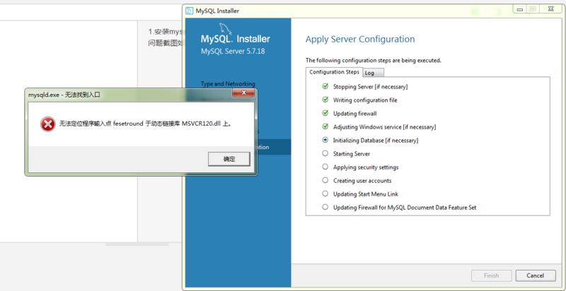 安裝mysql5.7.18出現(xiàn)如下問題,無法定位程序輸入點(diǎn)fesetround與動(dòng)態(tài)鏈接庫MSVCR120.dll上,網(wǎng)友給出了解決辦法