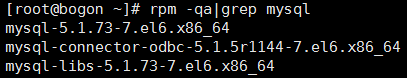 rpm -e --nodeps mysql-5.1.73-7.el6.x86_64 rpm -e --nodeps mysql-connector-odbc-5.1.5r1144-7.el6.x86_64 rpm -e --nodeps mysql-libs-5.1.73-7.el6.x86_64 rpm -qa|grep mysql