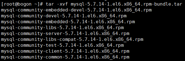 tar -xvf mysql-5.7.14-1.el6.x86_64.rpm-bundle.tar