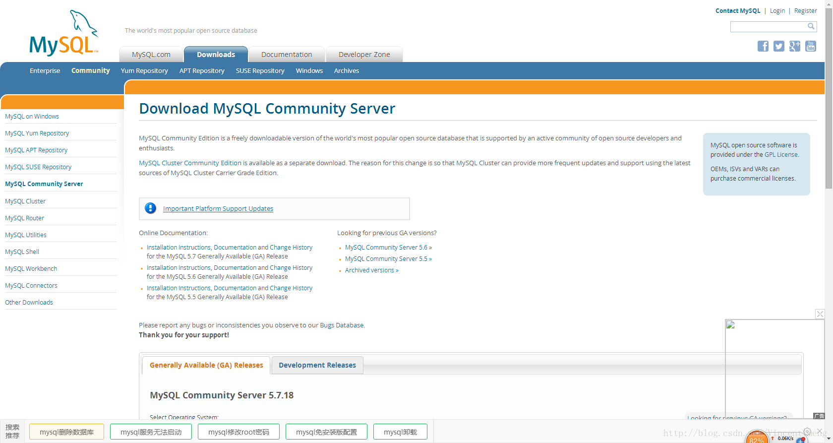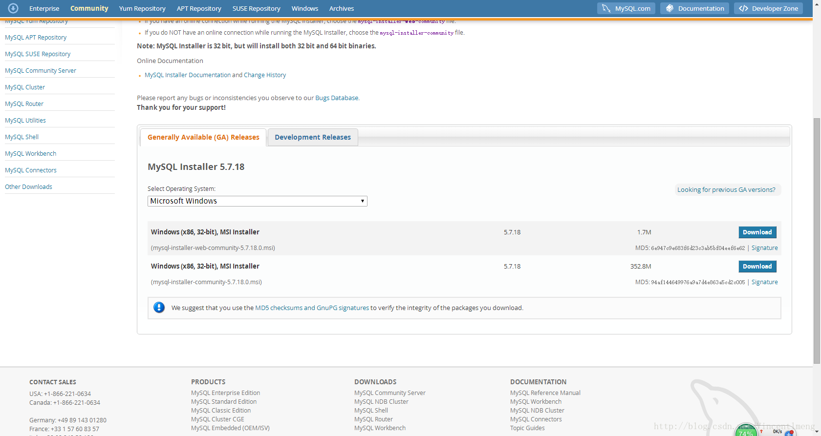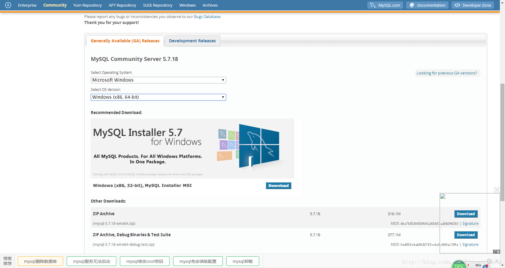這里我選擇的是當(dāng)前最新版本5.7.18下載MSI版本。