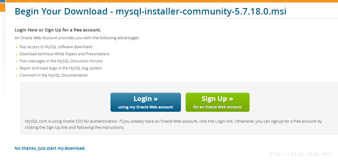 點擊下一步頁面會提示你注冊O(shè)racle賬號,如果你嫌麻煩可以跳過注冊這一步,點擊左下角no thanks即可立刻下載