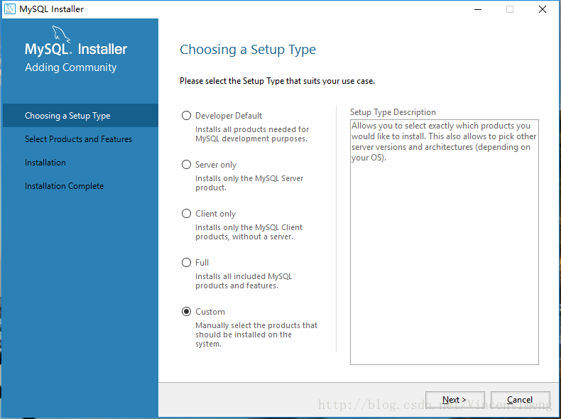 選擇安裝類型,根據(jù)個人需要選擇,這里我選擇自定義,然后點擊next