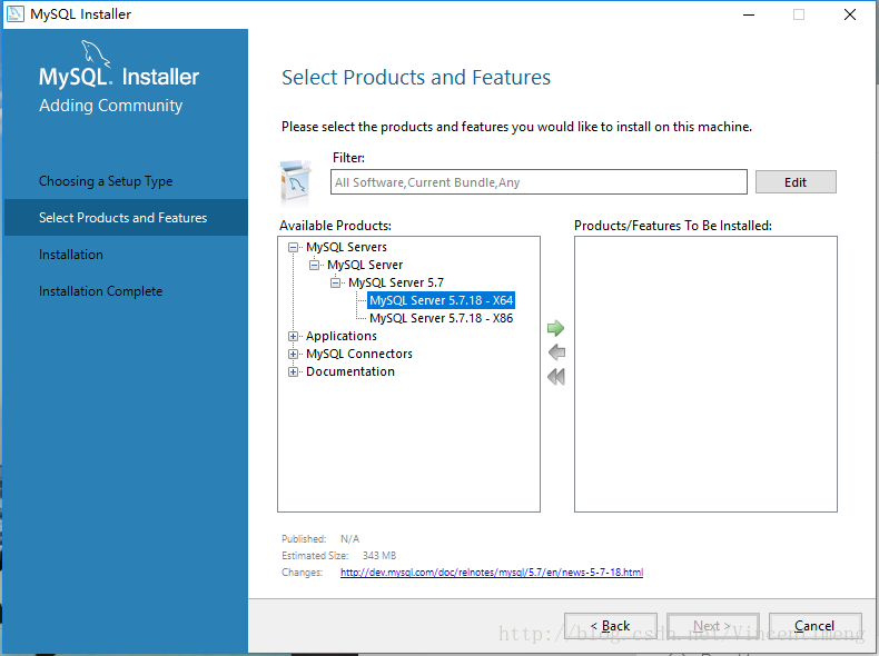 3、這里我們需要從安裝程序提供的可安裝的產(chǎn)品中選擇我們需要的mysql server