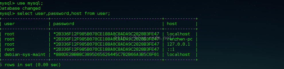 MySQL服務(wù)器上的已知用戶(hù)全都列在其mysql數(shù)據(jù)庫(kù)中的user數(shù)據(jù)表里,可以查看MySQL賬戶(hù),以root賬戶(hù)進(jìn)入