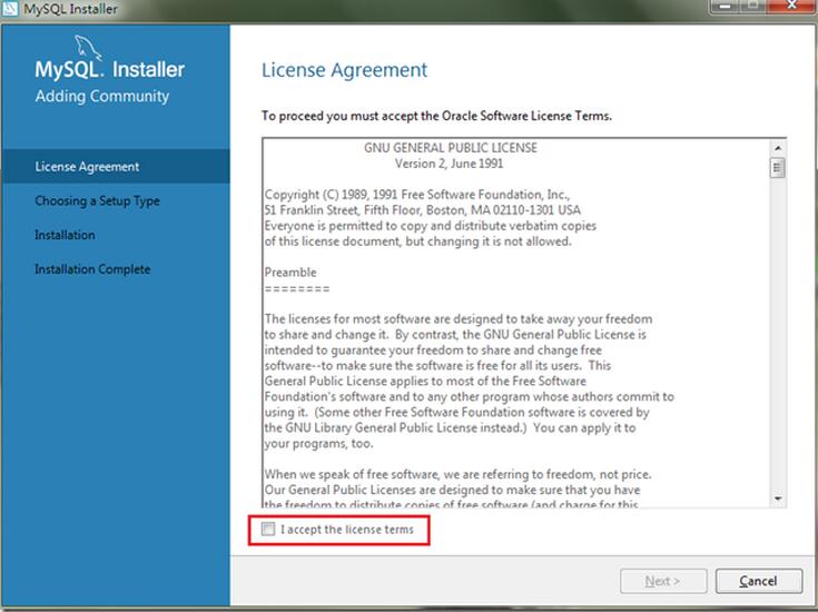 4、勾選 I accept the license terms,如下圖: