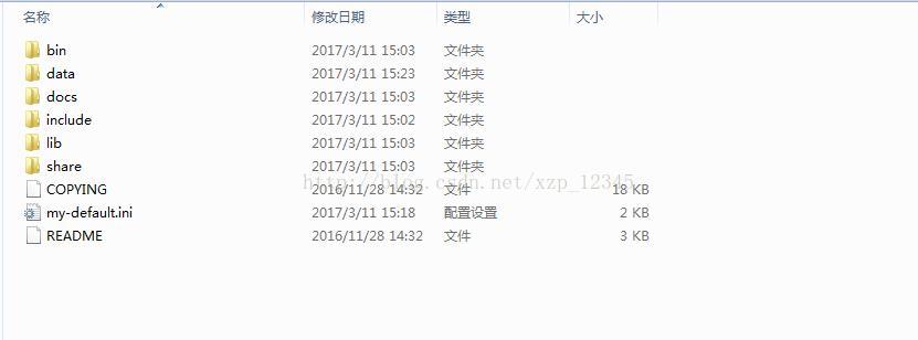 2.下載完成后將其解壓到你想要安裝的路徑下,例如我的解壓到D:\MySQL\mysql-5.7.17-winx64路徑下,剛解壓完應(yīng)該是下圖這些文件夾:
