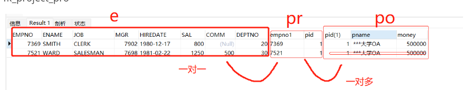 select * from projectrecord pr left join projects po on po.pid=pr.pid left join emp e on e.empno = pr.empno where pr.pid=1