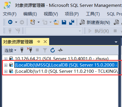 連接SqlLocalDB2019 :實(shí)例名: (LocalDb)\MSSQLLocalDB