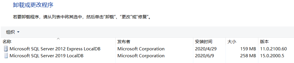 Visual Studio 安裝時(shí)會自動裝上MSSQLLocalDB 。