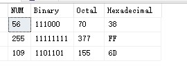 很簡單的一張表,就一個字段num,我想把這個字段的int型數(shù)字分別轉(zhuǎn)化成二進制八進制和十六進制的數(shù)值,有現(xiàn)成的進制轉(zhuǎn)化的表值函數(shù)。