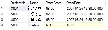 查詢每個學(xué)生最近兩次的考試成績,沒有參加考試的同學(xué)成績補 null