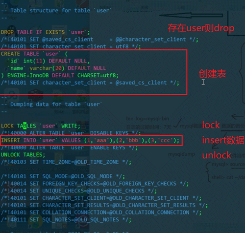 vim user.sql查看user.sql文件內(nèi)容如下: