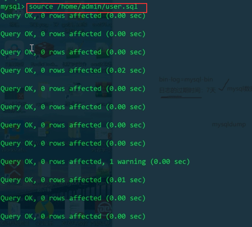 這樣就可以把我們之前備份的數(shù)據(jù)到mysql的庫(kù)表中