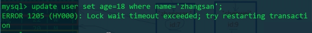 因?yàn)楝F(xiàn)在name走的是索引, 通過zhangsan在輔助索引樹上找到它所在行記錄的id是7,然后到主鍵索引樹上,獲取對應(yīng)行記錄的排他鎖(個(gè)人猜測應(yīng)該是輔助索引樹和主鍵索引樹相應(yīng)的記錄都加了鎖)