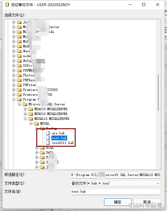 在彈出的選擇備份目標(biāo)對(duì)話(huà)框匯總,選擇好備份的路徑;文件類(lèi)型選擇備份文件,文件名 填寫(xiě)需要備份的數(shù)據(jù)庫(kù)的名稱(chēng),最好在備份的數(shù)據(jù)庫(kù)的名稱(chēng)后加上日期,方便以后查找,再連續(xù)單擊確定,即可完成備份;