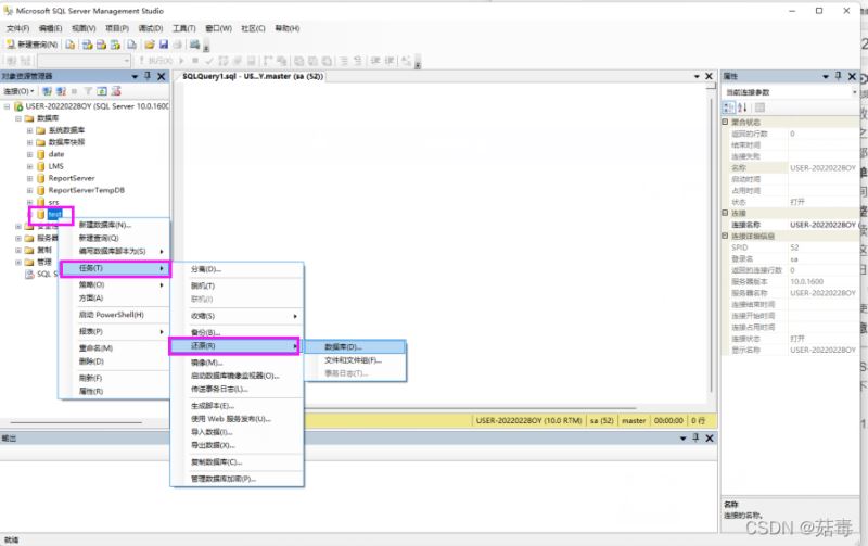 用 SSMS 對(duì)象管理資源管理器恢復(fù)數(shù)據(jù)庫(kù),操作步驟如下: