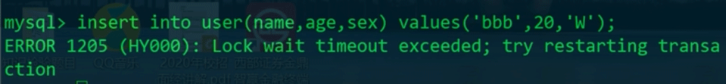 MySQL server不會讓自己執(zhí)行事務的線程永遠阻塞,導致當前線程占用的鎖無法釋放,而使得其他執(zhí)行事務的線程也無法獲得鎖而永遠阻塞。所以執(zhí)行事務的線程都是帶有時間的,當線程等待時間過長時,會讓超時線程釋放鎖,并會返回一個錯誤: