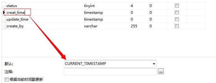 字段默認值設置為 CURRENT_TIMESTAMP ,這樣在新增的時候,日期會自動生成。