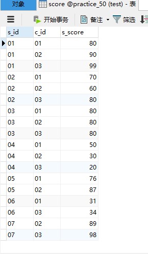 s_id 表是學(xué)生編號,c_id表是課程編號,s_score 表是學(xué)生對應(yīng)的課程分?jǐn)?shù)