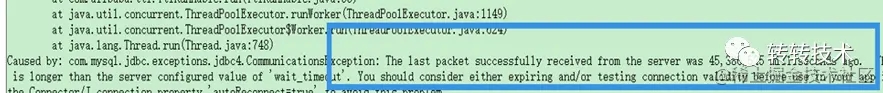 從日志不難看出,這是由于該連接長(zhǎng)時(shí)間未和MySQL服務(wù)端交互,服務(wù)端已將連接關(guān)閉,典型的連接失效場(chǎng)景。