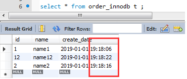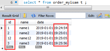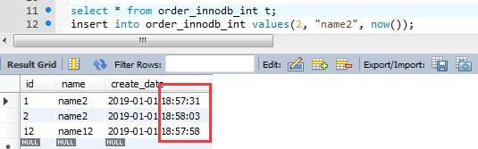 觀察create_date可以看出,插入順序?yàn)? , 2 , 12, 3。 查詢結(jié)果也是1 , 2 , 12, 3, 因此一定不是按照id排序的。 強(qiáng)調(diào):當(dāng)前表的id類型為字符串