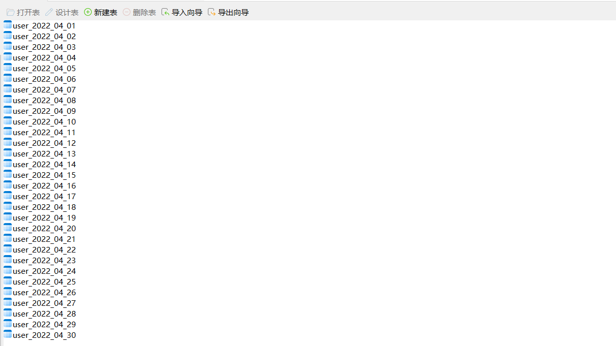 創(chuàng)建下個月的每天對應的表user_2022_01_01、...