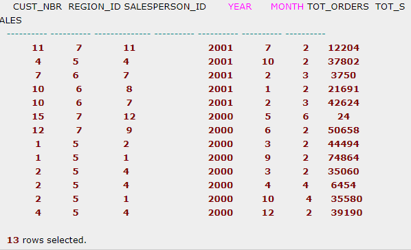 from orders_tmp where o.year = 2001 group by CUST_NBR, REGION_ID order by REGION_ID) tmptb