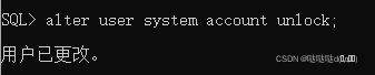連接Oracle服務器成功后,執(zhí)行alter user system account unlock;來對system用戶進行解鎖。