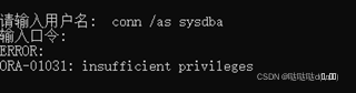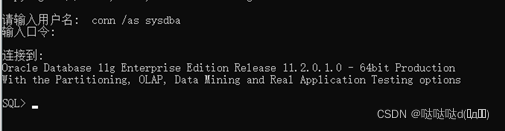 然后執(zhí)行conn /as sysdba,不用輸入口令直接登錄