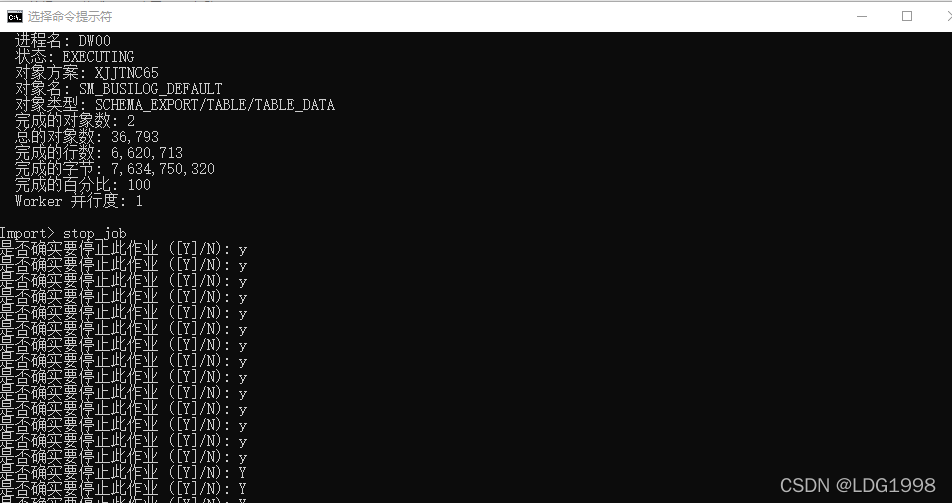接著,當我使用 stop_job 這條命令后會提示是否停止作業(yè),這時只需要輸入一次Y然后回車兩次就好了,不需要一直輸入Y。0.0