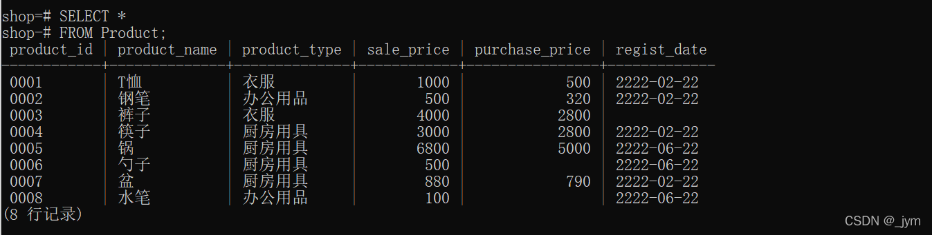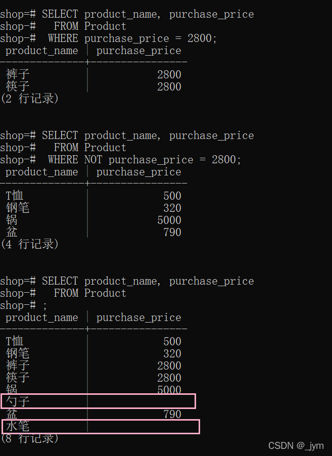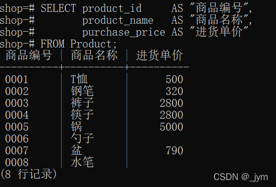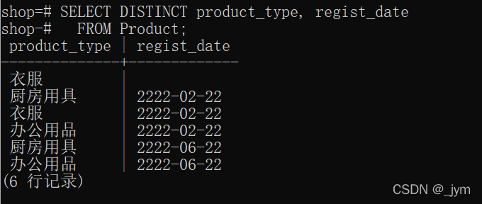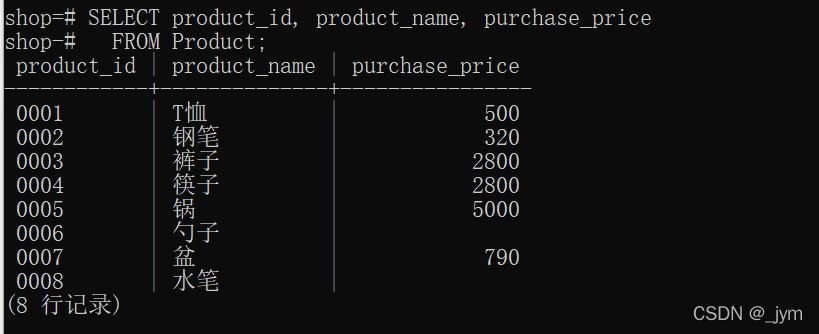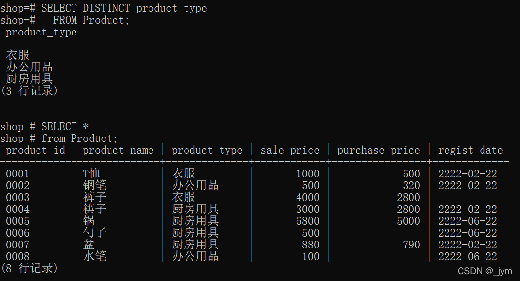-- 本SELECT語(yǔ)句會(huì)從結(jié)果中刪除重復(fù)行。 SELECT DISTINCT product_id, purchase_price FROM Product;