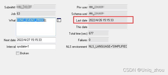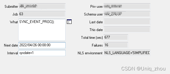 由于項(xiàng)目需要同步其他系統(tǒng)數(shù)據(jù)庫數(shù)據(jù)庫,在創(chuàng)建完dblink,存儲(chǔ)過程后,新建了一個(gè)dbm_job任務(wù),滿心期待的可以早點(diǎn)下班時(shí),卻發(fā)現(xiàn)定時(shí)任務(wù)并沒有按照時(shí)間執(zhí)行。