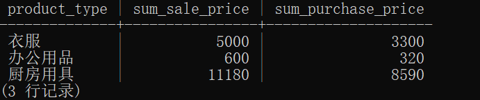 通過下面,得到一個根據商品種類分組的表,并且計算出每個種類的價格的和。