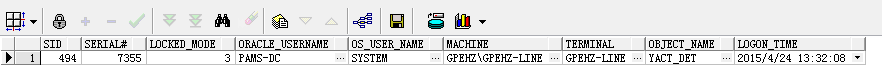 3、查出鎖定表的sid, serial#,os_user_name, machine_name, terminal,鎖的type,mode