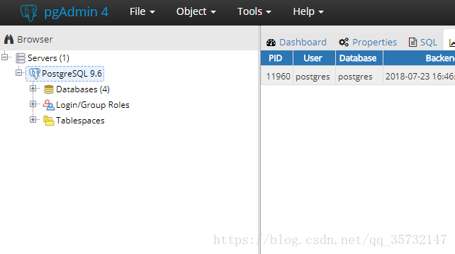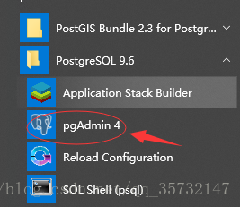 打開位于"開始>所有程序>PostgreSQL 9.6"之中的pgAdmin 4