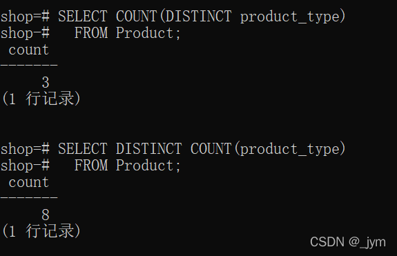 所有的聚合函數(shù)的參數(shù)中都可以使用DISTINCT。