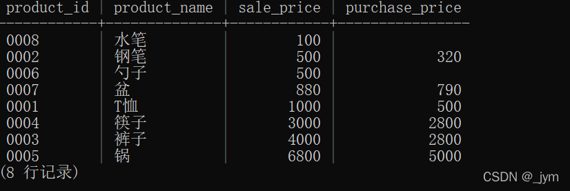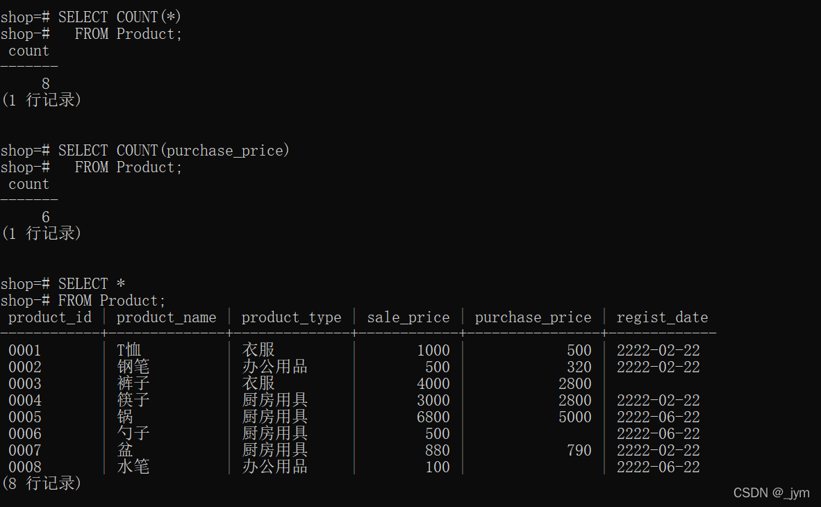 對于列里面數(shù)據(jù)有NULL的,會事先去掉NULL再計算。如AVG(purchase_price),分母是6而不是8。
