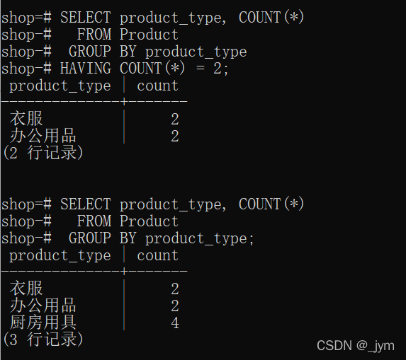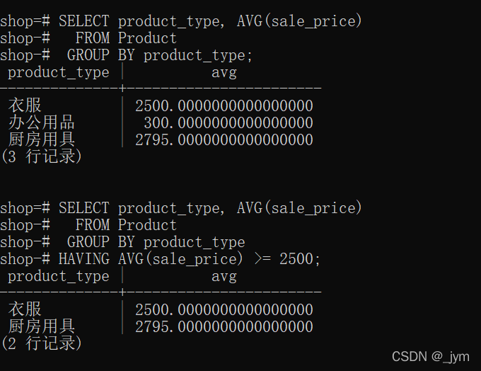 聚合鍵所對應(yīng)的一些條件,可以寫在HAVING子句中,也可寫在WHERE子句中。
