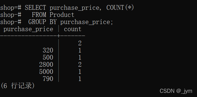 GROUP BY指定的列,稱為聚合鍵、分組列。